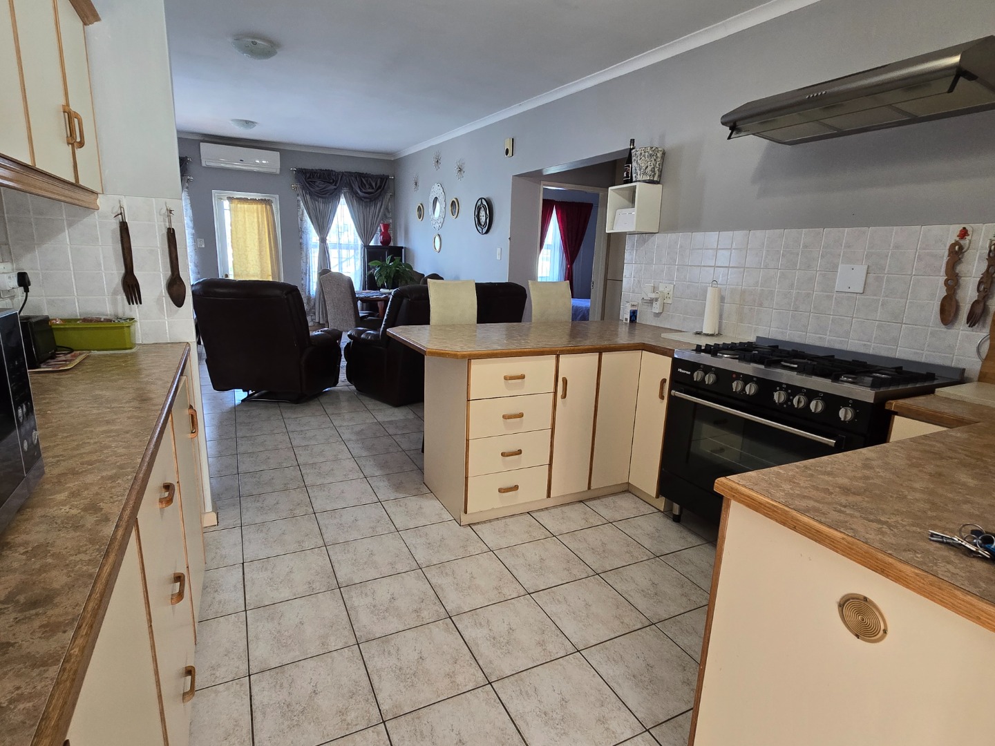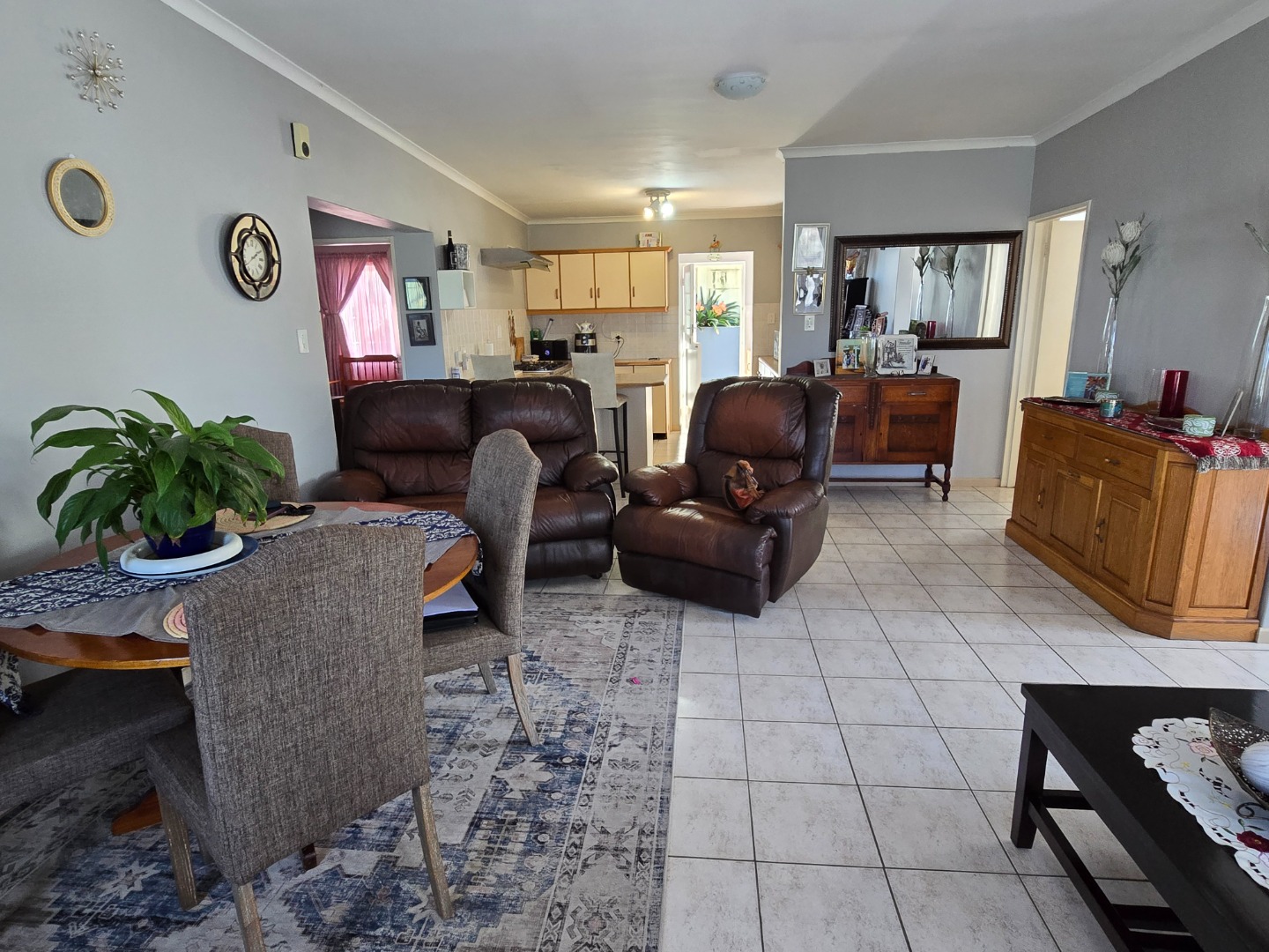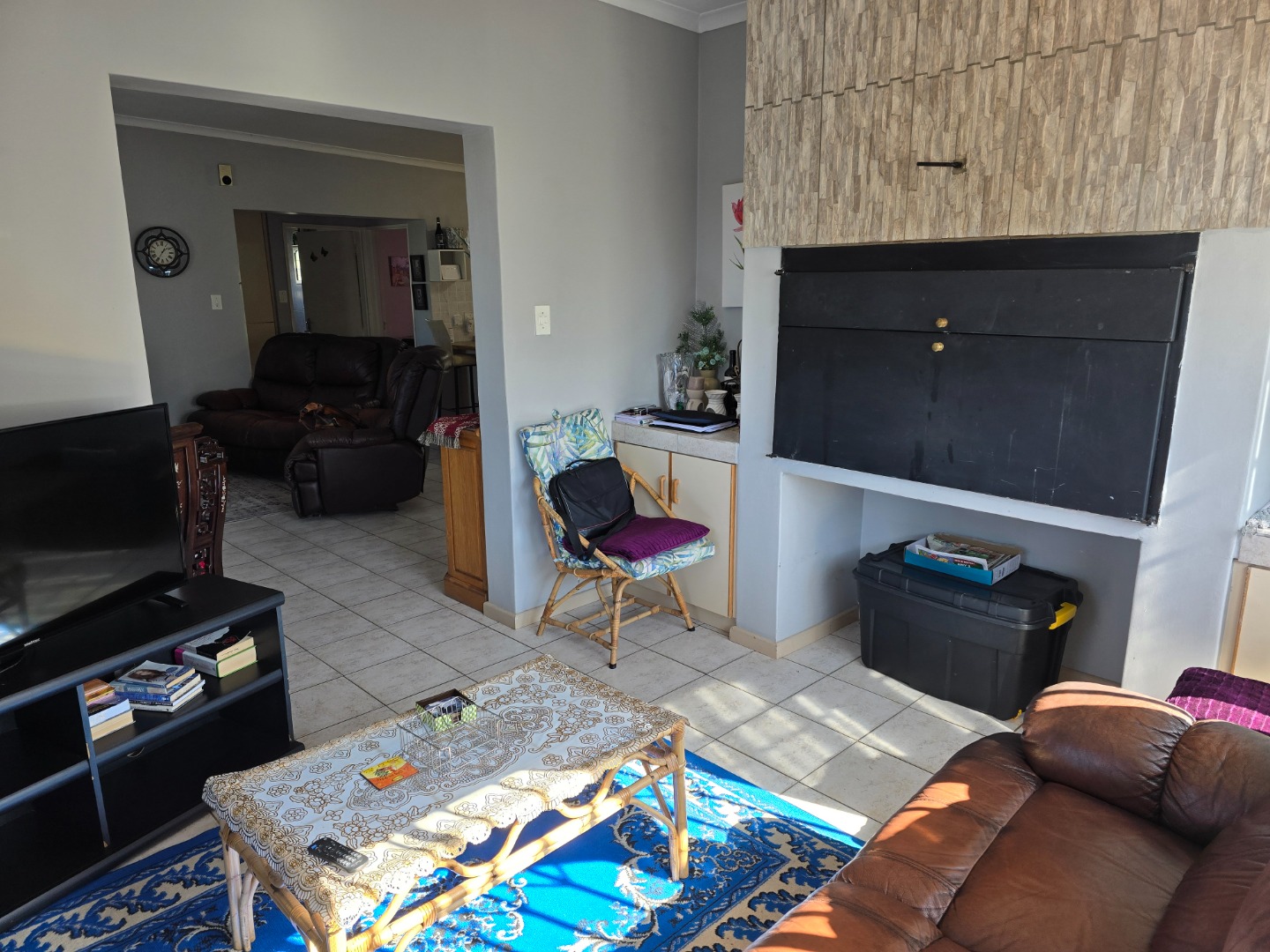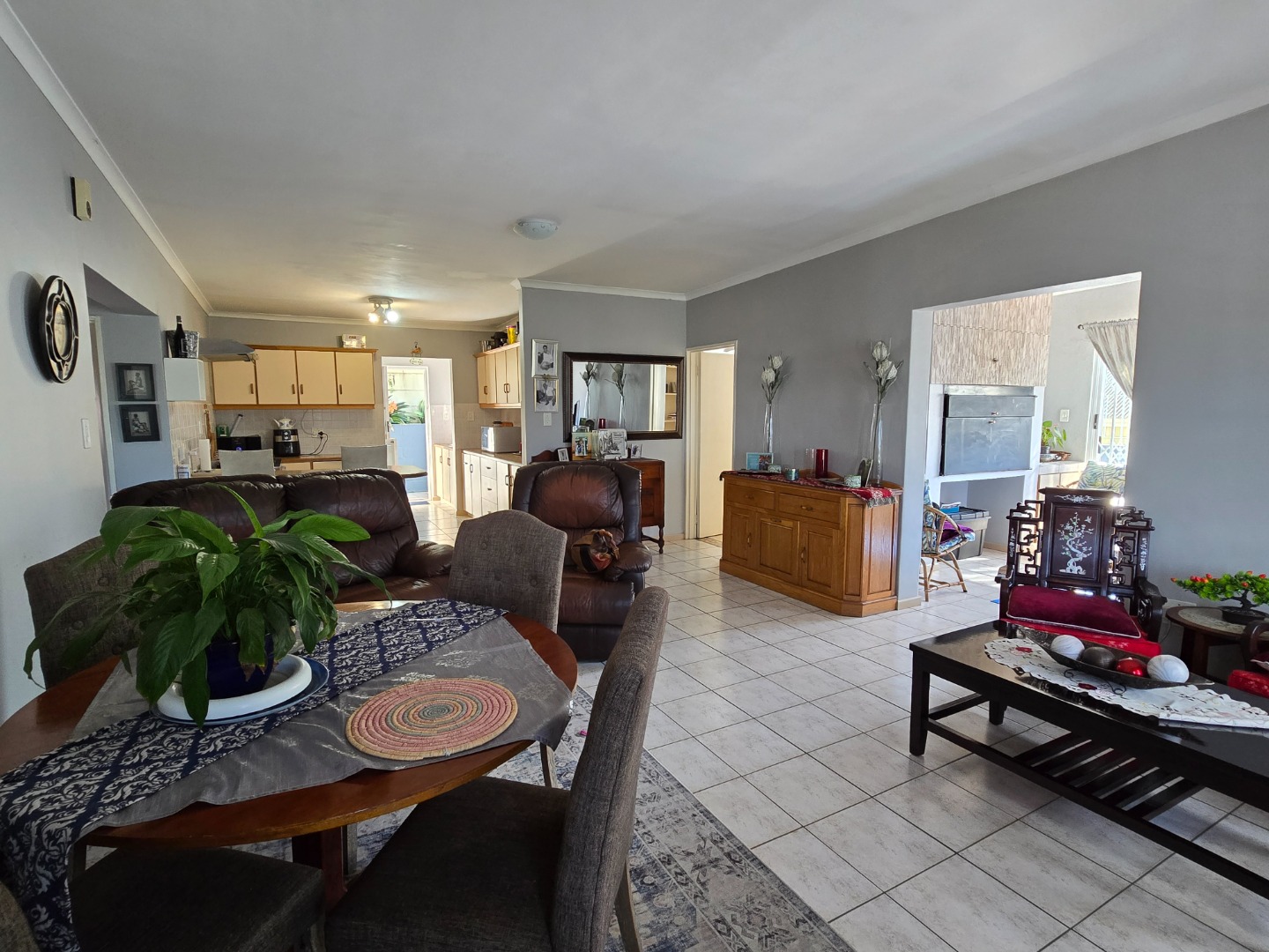 Step inside to a warm, sunlit living space ready to be made your own. Large windows allow plenty of natural light to fill the home, creating a bright and airy atmosphere. The open-plan layout connects the living areas effortlessly, making it ideal for everyday living and entertaining. A built-in braai/fireplace adds to the comfort, perfect for cosy evenings with family and friends.