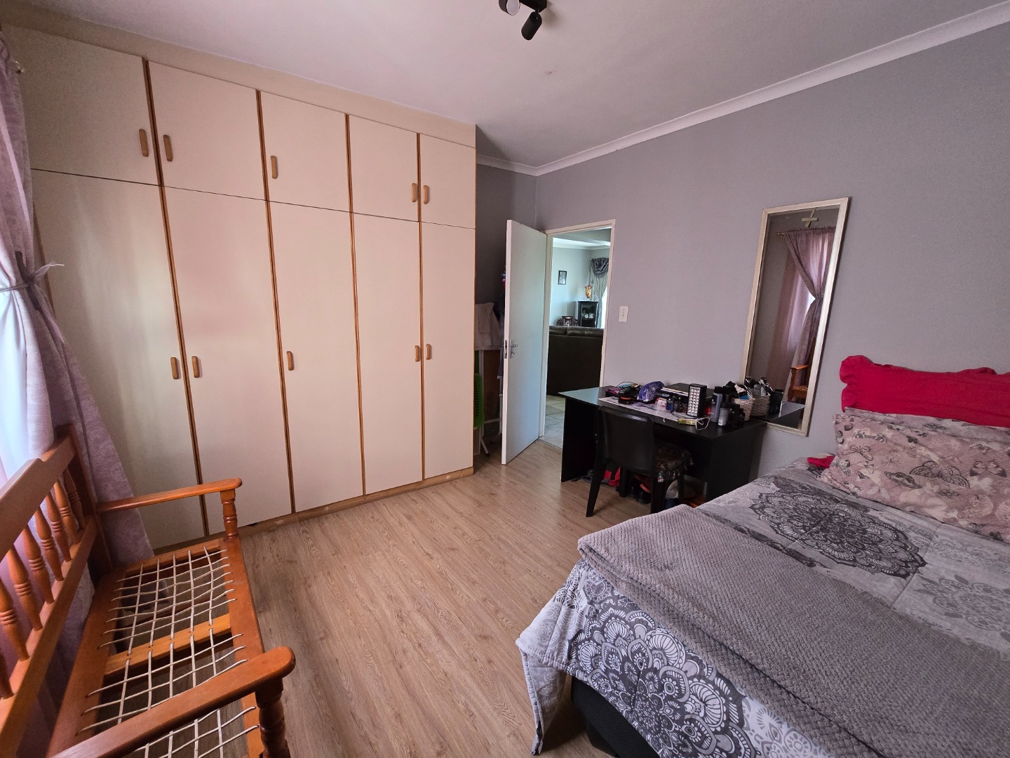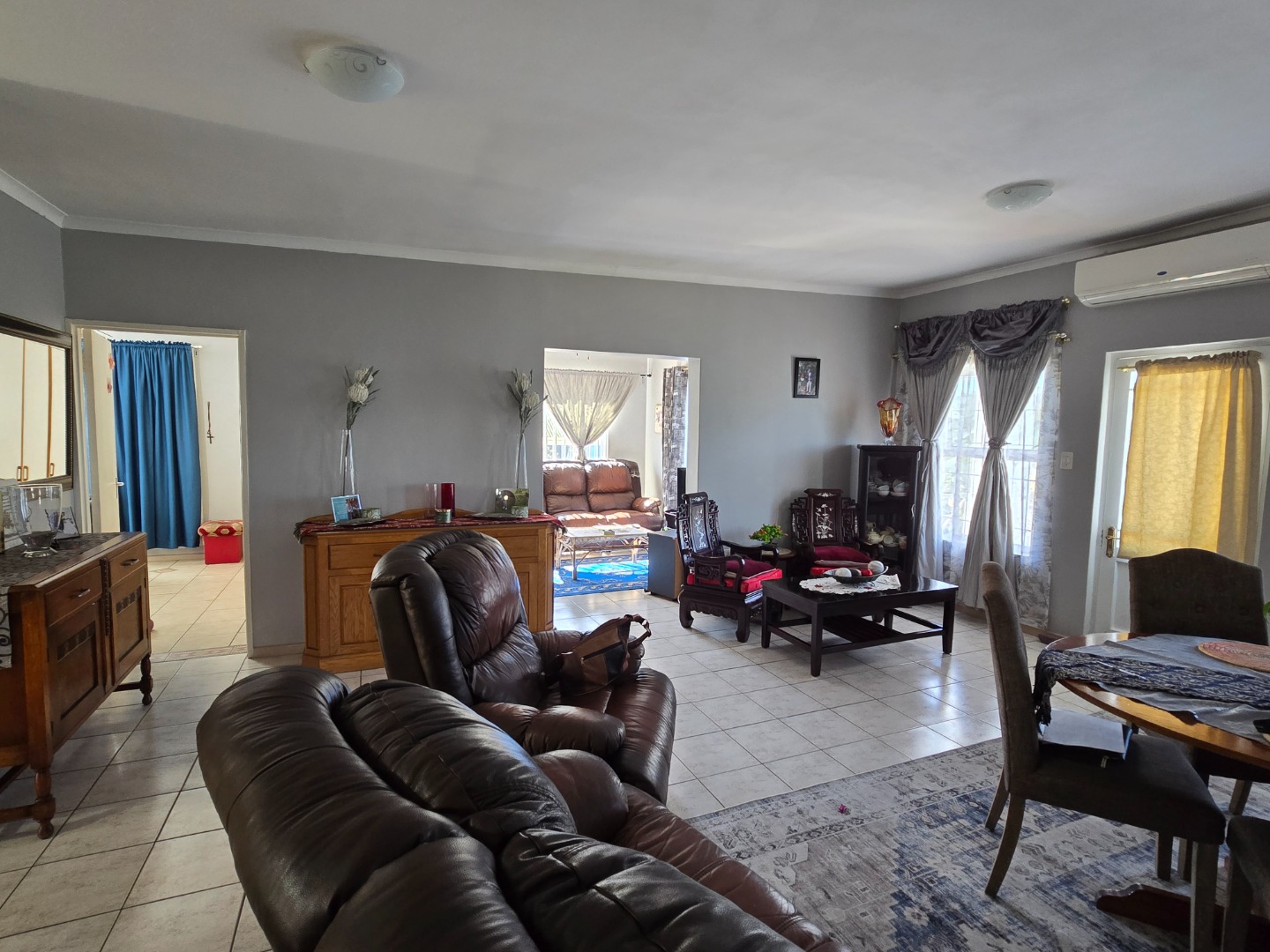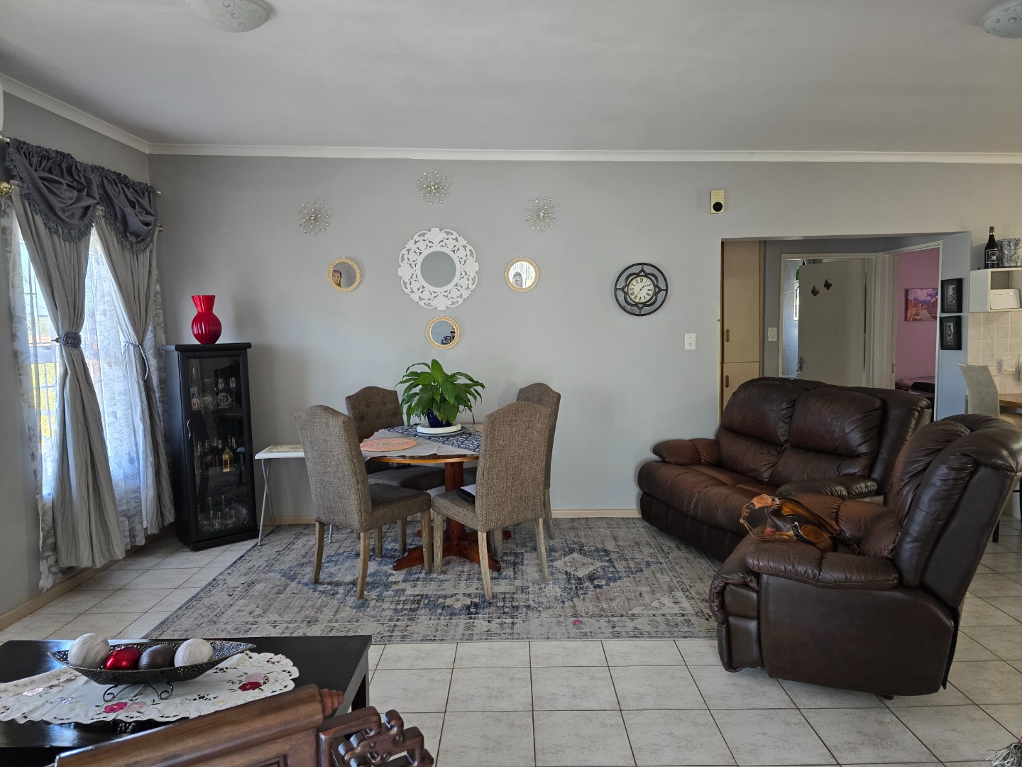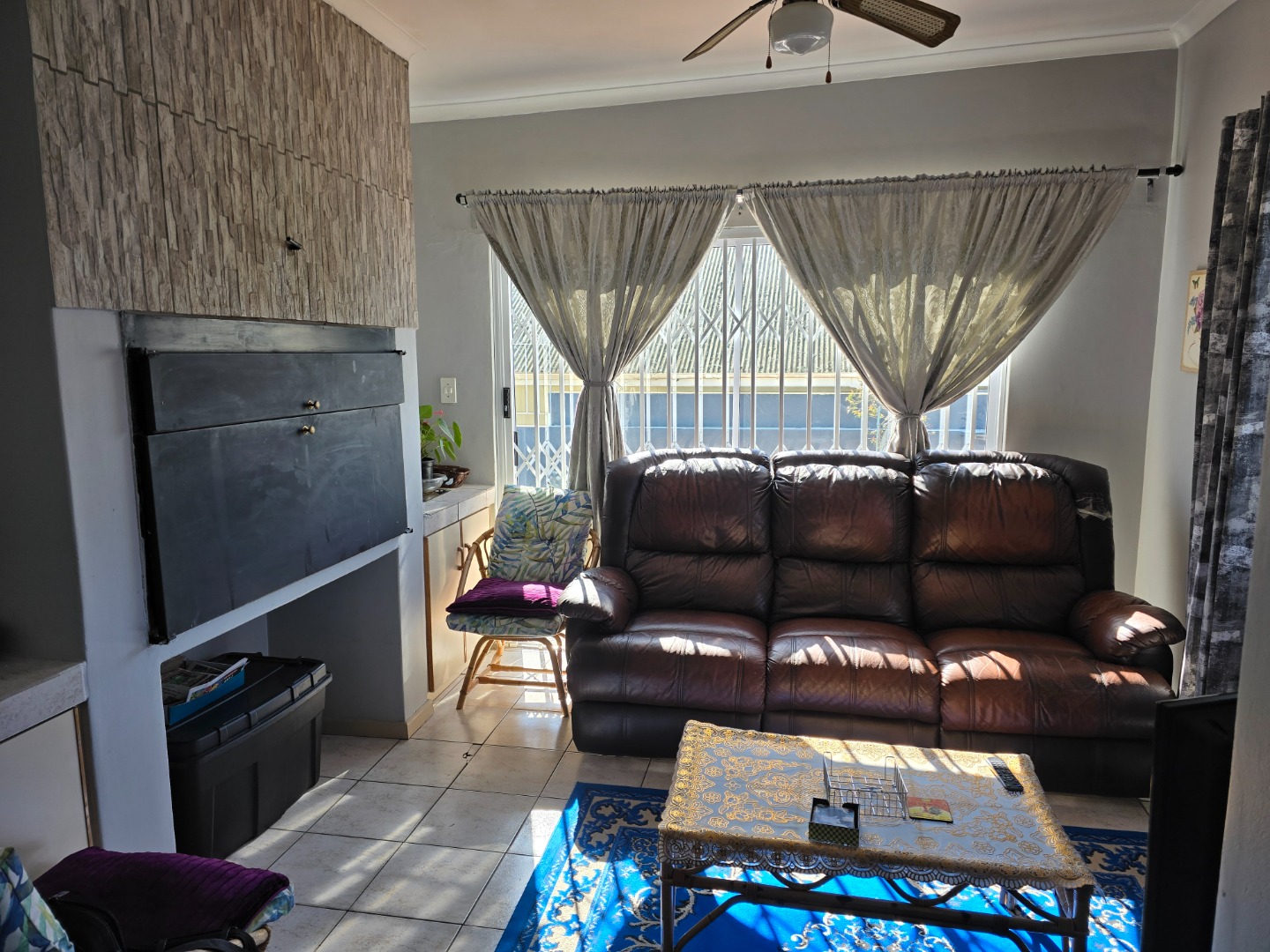 Step inside to a warm, sunlit living space ready to be made your own. Large windows allow plenty of natural light to fill the home, creating a bright and airy atmosphere. The open-plan layout connects the living areas effortlessly, making it ideal for everyday living and entertaining. A built-in braai/fireplace adds to the comfort, perfect for cosy evenings with family and friends.