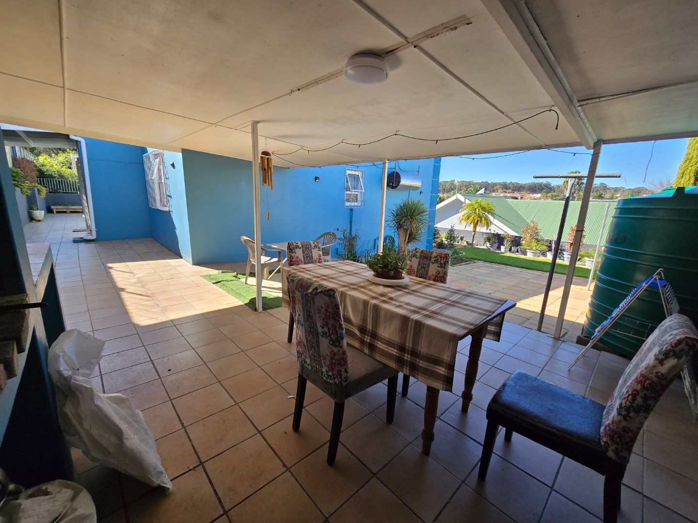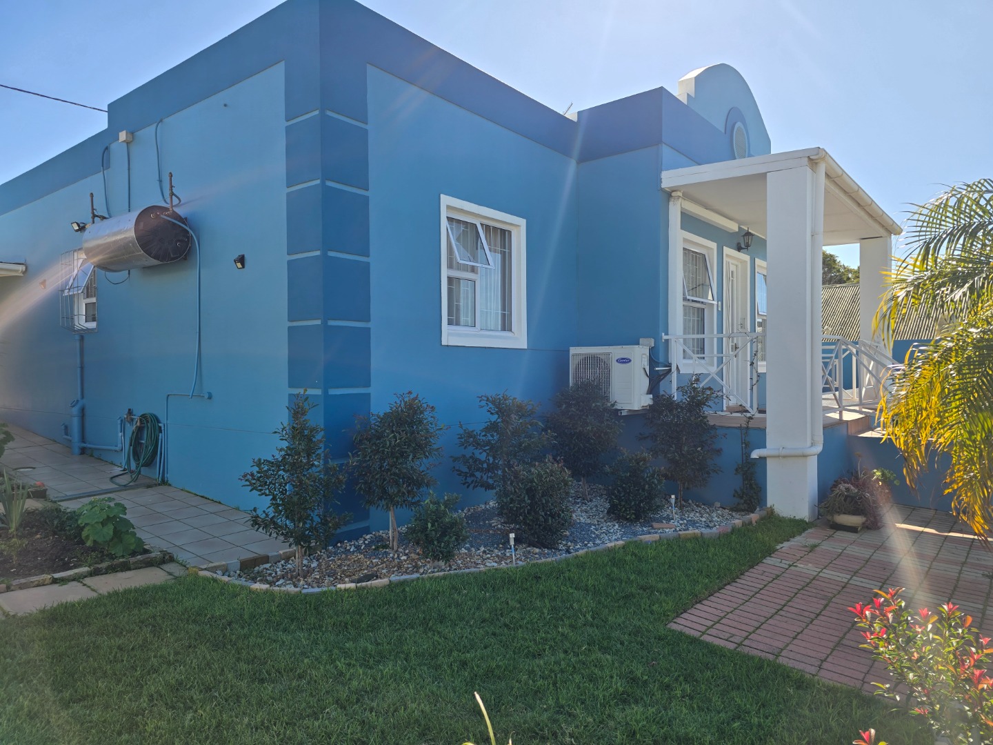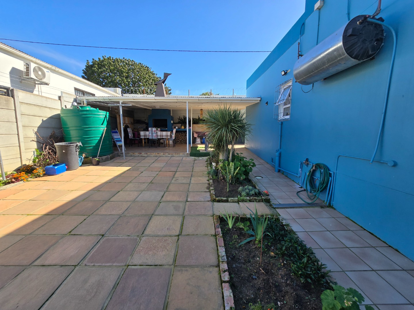 Welcome to this charming home nestled in the heart of Bergzicht, Malmesbury. From the curb, the vibrant blue façade and unique architectural design immediately catch the eye, creating a fresh and welcoming first impression. The property offers practical features including two garages and a carport, with a paved driveway that enhances the neat, well-maintained exterior.