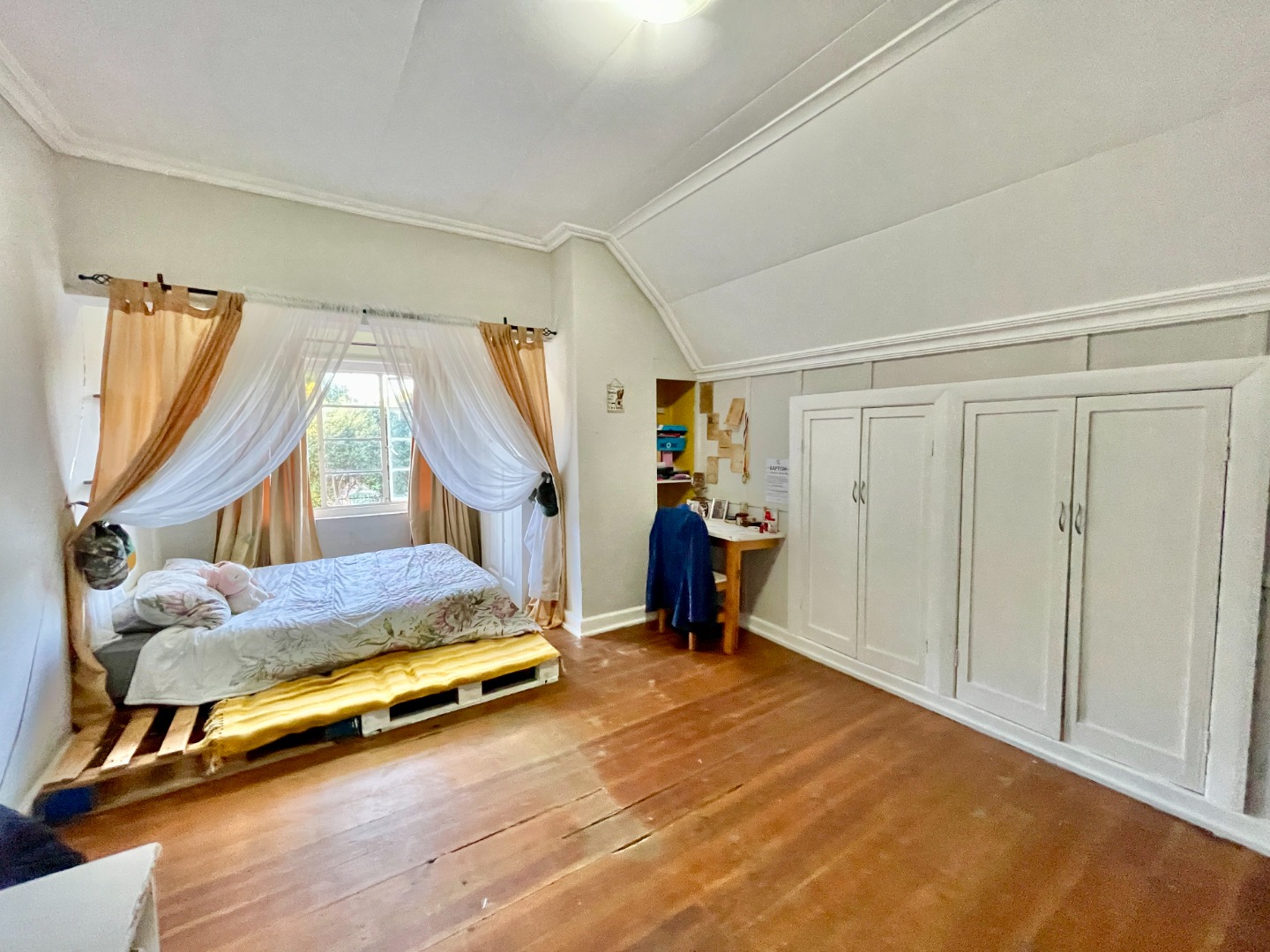 Upstairs, the first floor hosts three bedrooms, each with built-in cupboards and its own unique charm. The master bedroom boasts an en-suite bathroom, while a separate guest bathroom serves the remaining bedrooms.