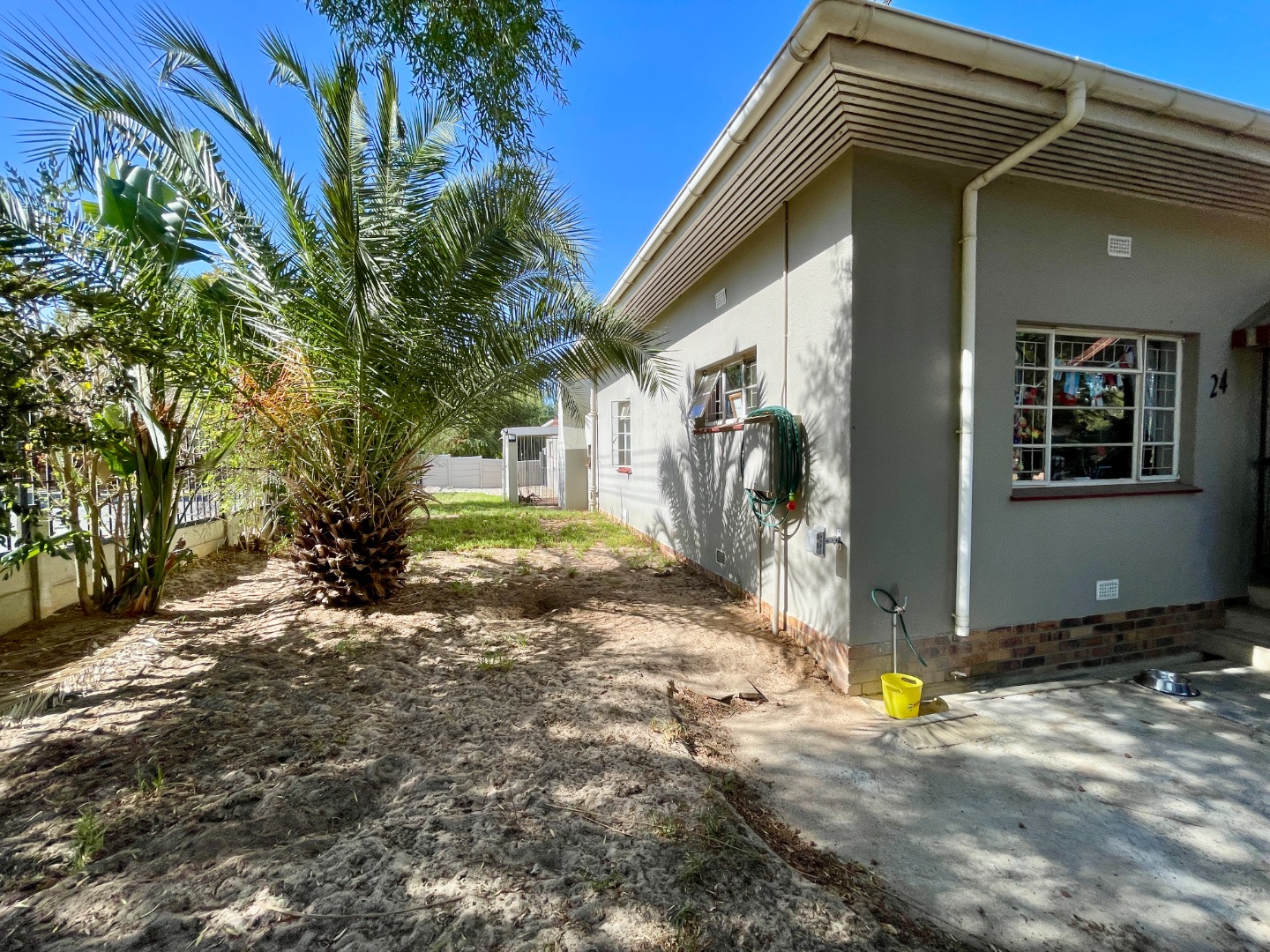 Outdoor living is a highlight, with a private swimming pool offering a refreshing escape during warmer months. A paved patio area features a built-in braai, ideal for entertaining guests. The property also benefits from a well-maintained garden, a wendy house for extra storage, and a flatlet, providing versatile options for extended family or potential rental income. Four dedicated parking spaces ensure convenience for residents and visitors alike. This property is pet-friendly and includes an alarm system for enhanced security.