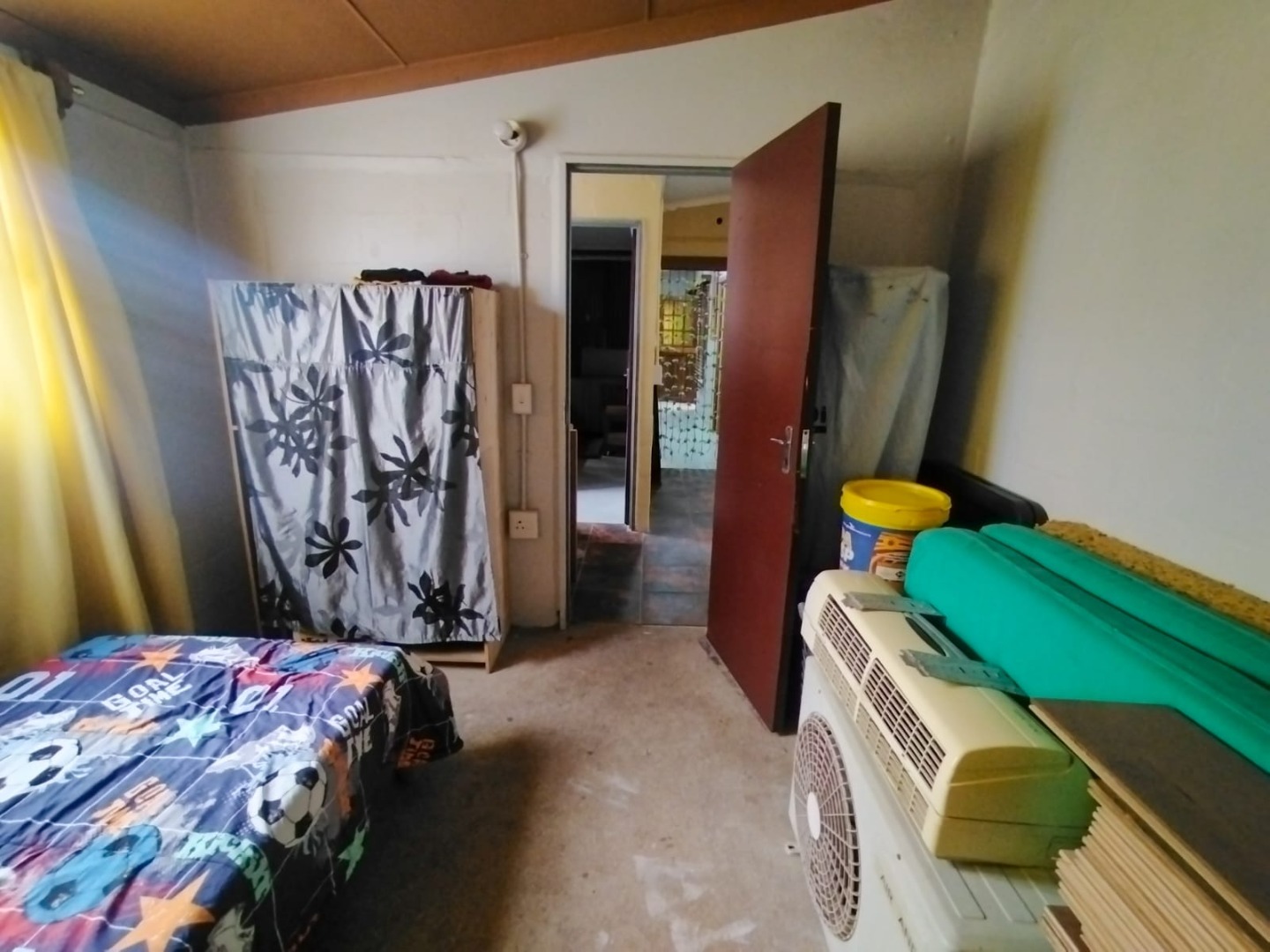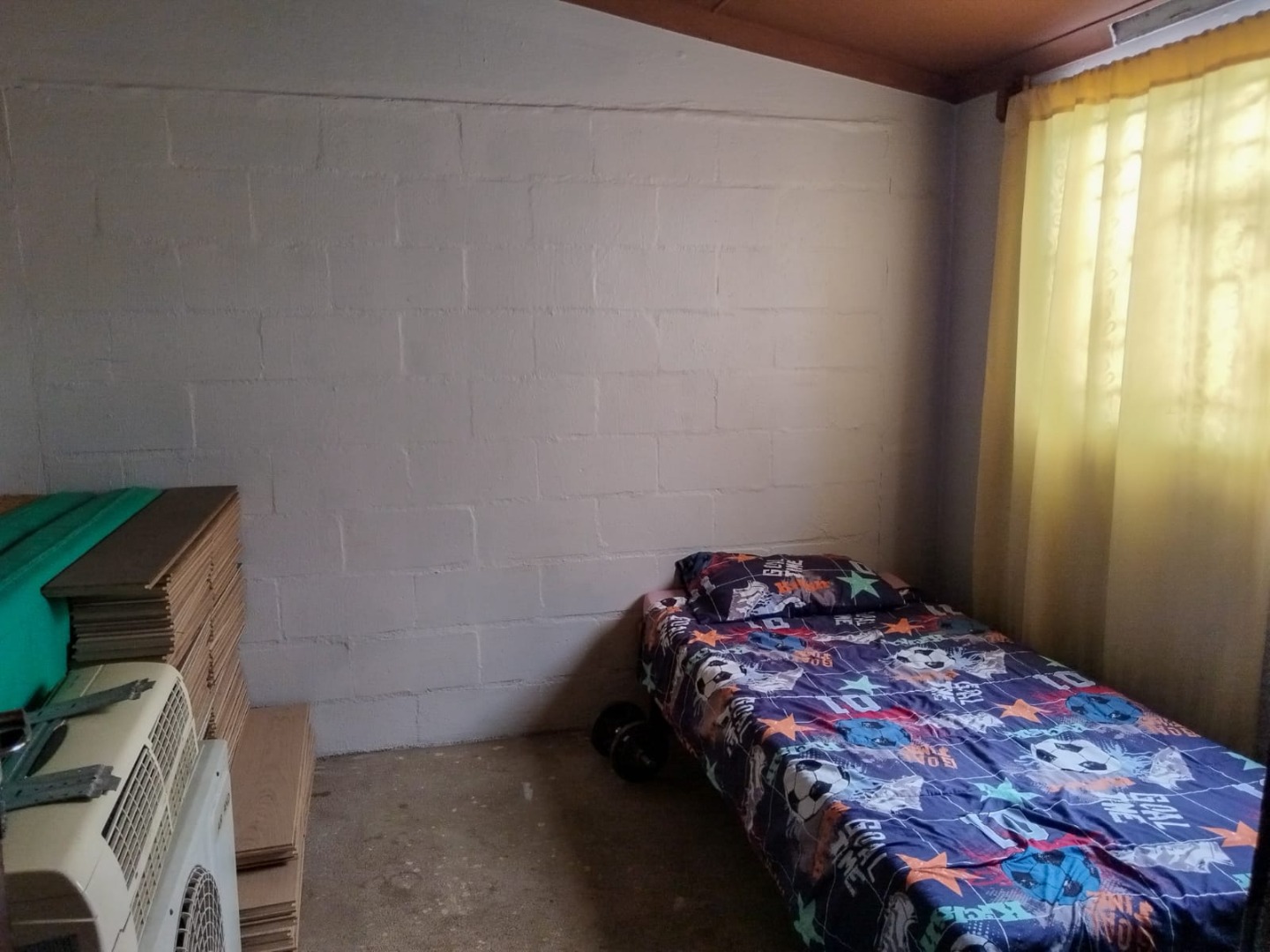 There are three bedrooms, each offering adequate space and natural light. The bathroom serves the household and is complemented by a separate utility or laundry area. Outside, the property includes an automated garage with secure parking for two vehicles, all within a fully enclosed yard, providing added security and peace of mind.