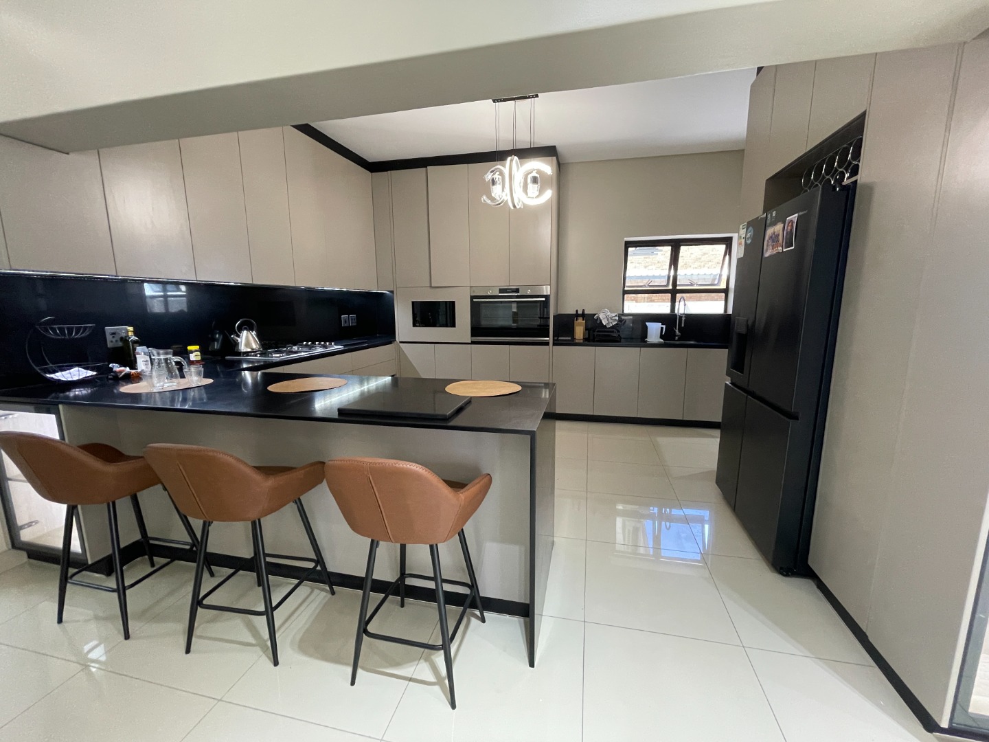 The interior boasts an impressive layout featuring two spacious lounges and two distinct dining rooms, providing ample space for both formal entertaining and relaxed family gatherings. The open-plan design enhances the flow between these areas, creating an inviting atmosphere. Catering to diverse needs, the property includes two fully equipped kitchens, offering flexibility for large families or potential dual living arrangements. Special doors and lighting fixtures add a touch of elegance throughout the living areas.